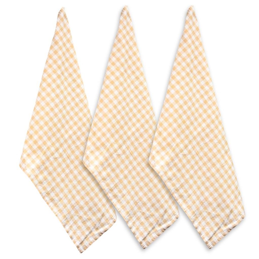 Sada 3 kusů bavlněných utěrek s károvaným vzorem v béžové barvě. Utěrky doporučujeme před prvním použitím vyprat, lépe pak plní svou funkci savost.