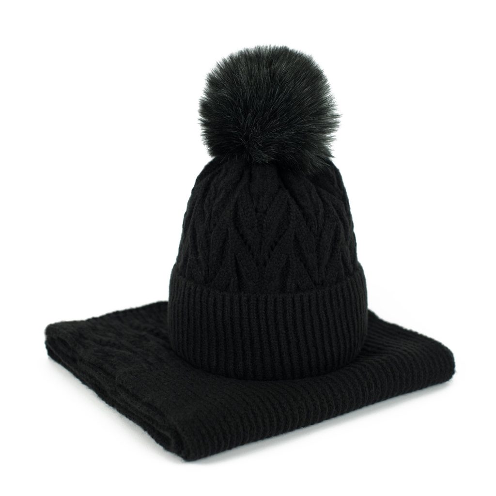 Zimní sada: čepice a šála. Ideální sada pro milovníky jednoduchých řešení. Stvořený pro zmrzlíky. Klasický střih se bude hodit k mnoha stylizacím. Provedený z příjemného materiálu. Zimní čepice s bambulí. Výrobek zateplený flaušem. Vyrobeno v Polsku.