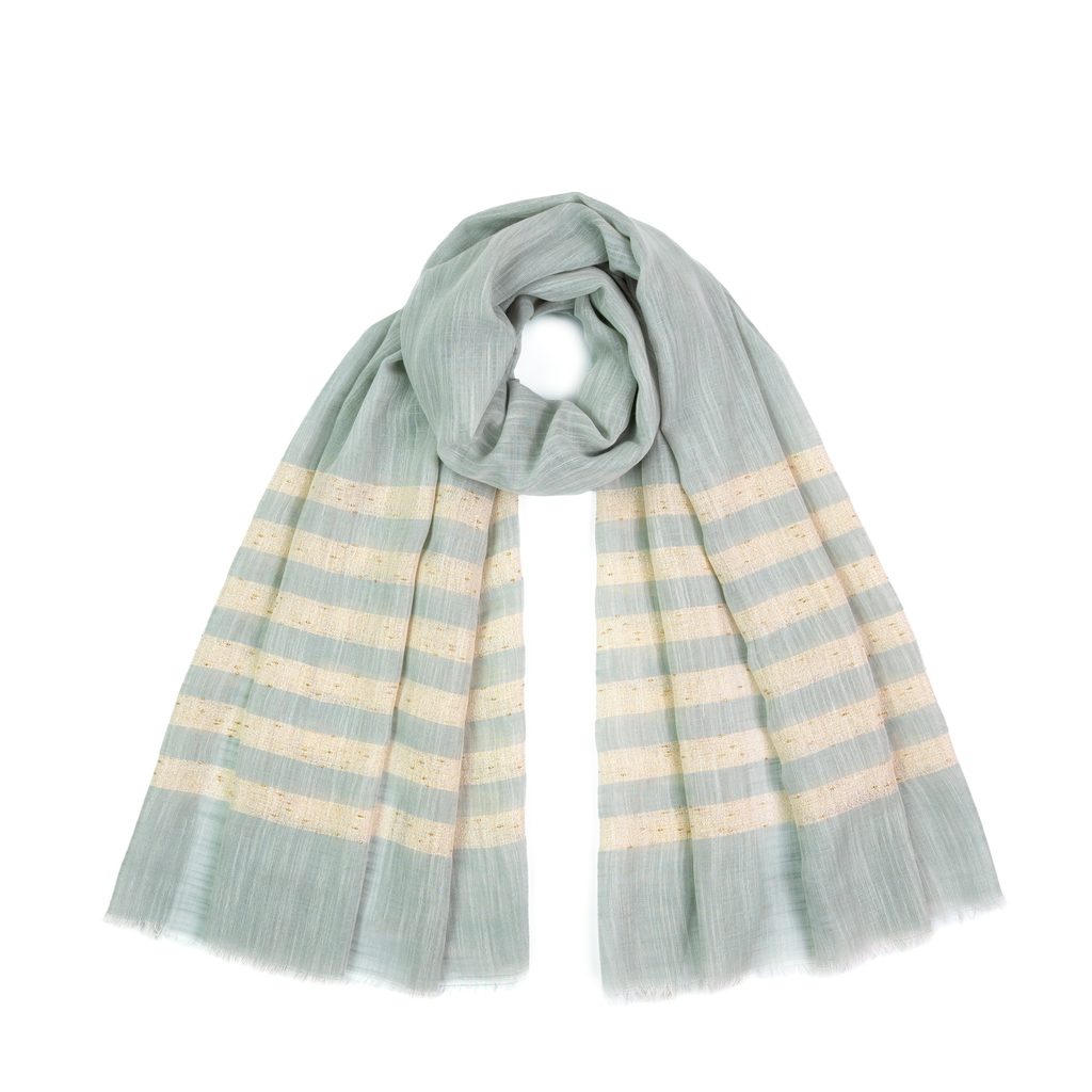 Lehká šála zakončená třásněmi. Prodyšná a měkká, krásně se formuje. Jednoduchá svou formou, hodí se k různým stylizacím. Klasická a nadčasová.