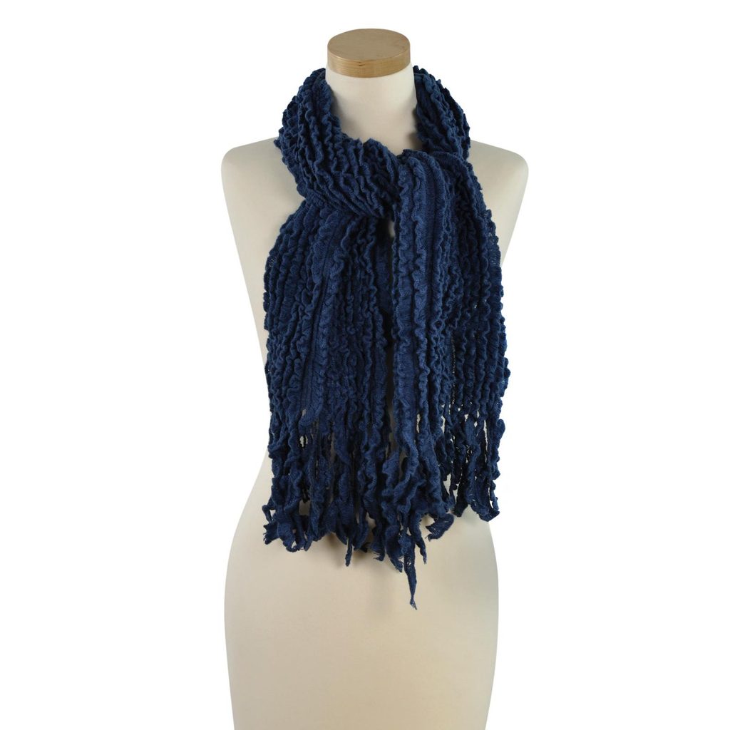 Dámský šátek s volánky a výraznými třásněmi. Třásňové okraje dodávají šátek lehkost a jemnost. Vyroben z mimořádně měkkého a příjemného materiálu.