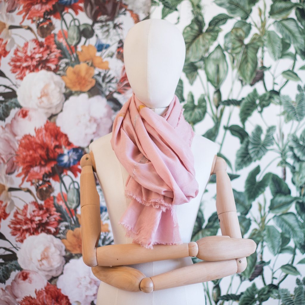 Šál Dámský hladký šál s krajkou s růžovým vzorem