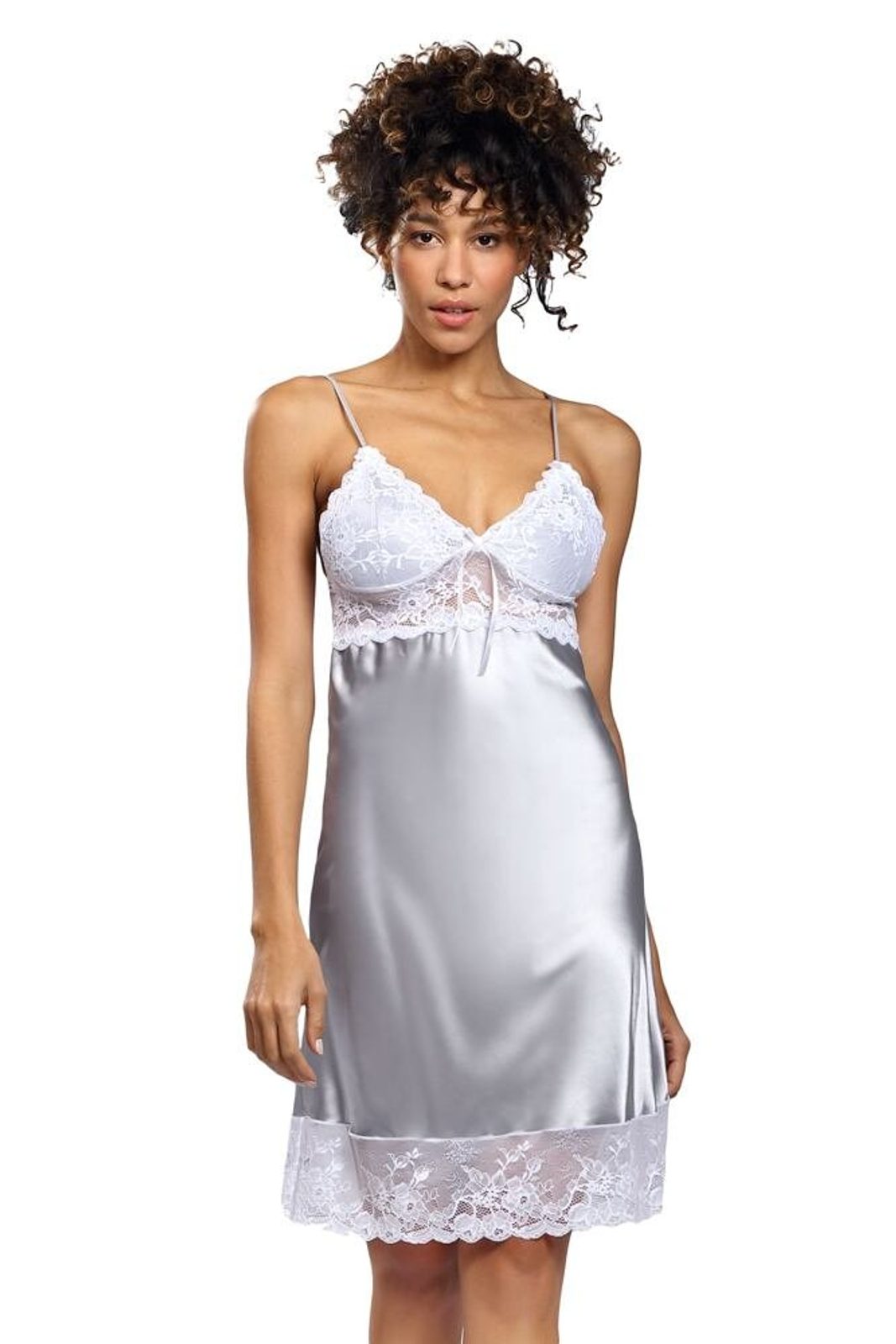 Něžná dámská košilka ve stříbrné barvě je velice jemná na dotek pokožky. Něžná dámská košilka ve stříbrné barvě je velice jemná na dotek pokožky. Materiál: 100% polyester