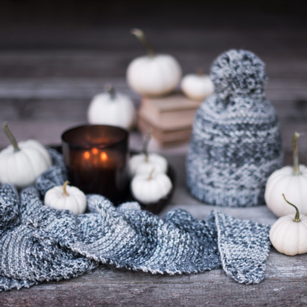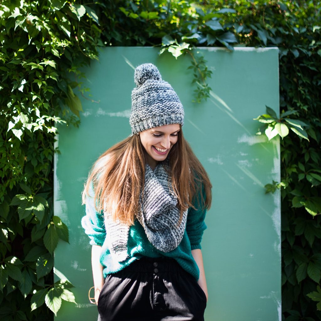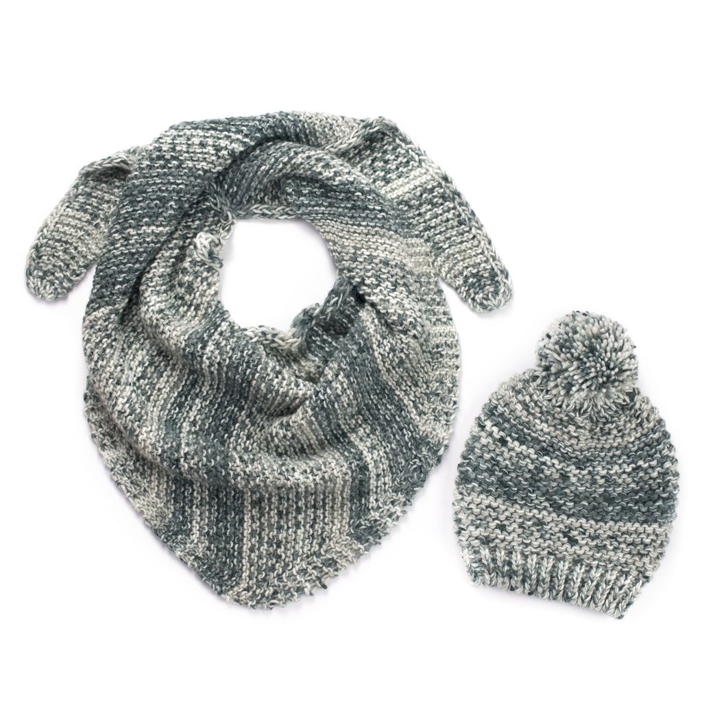 Stylová sada na zimu - šedá Šedá pruhovaná zimní sada