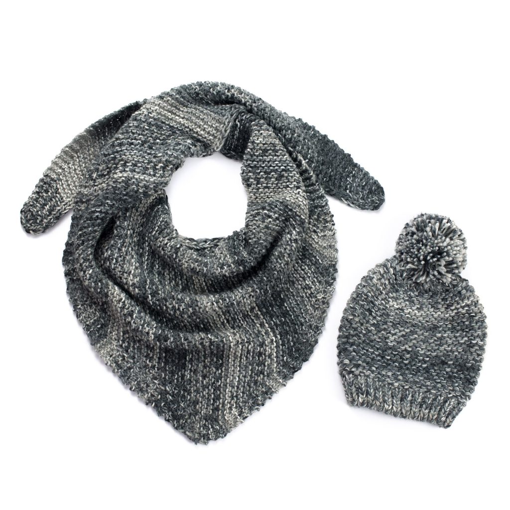 Sada pletené čepice a šály Lomnice černá Šedá pruhovaná zimní sada
