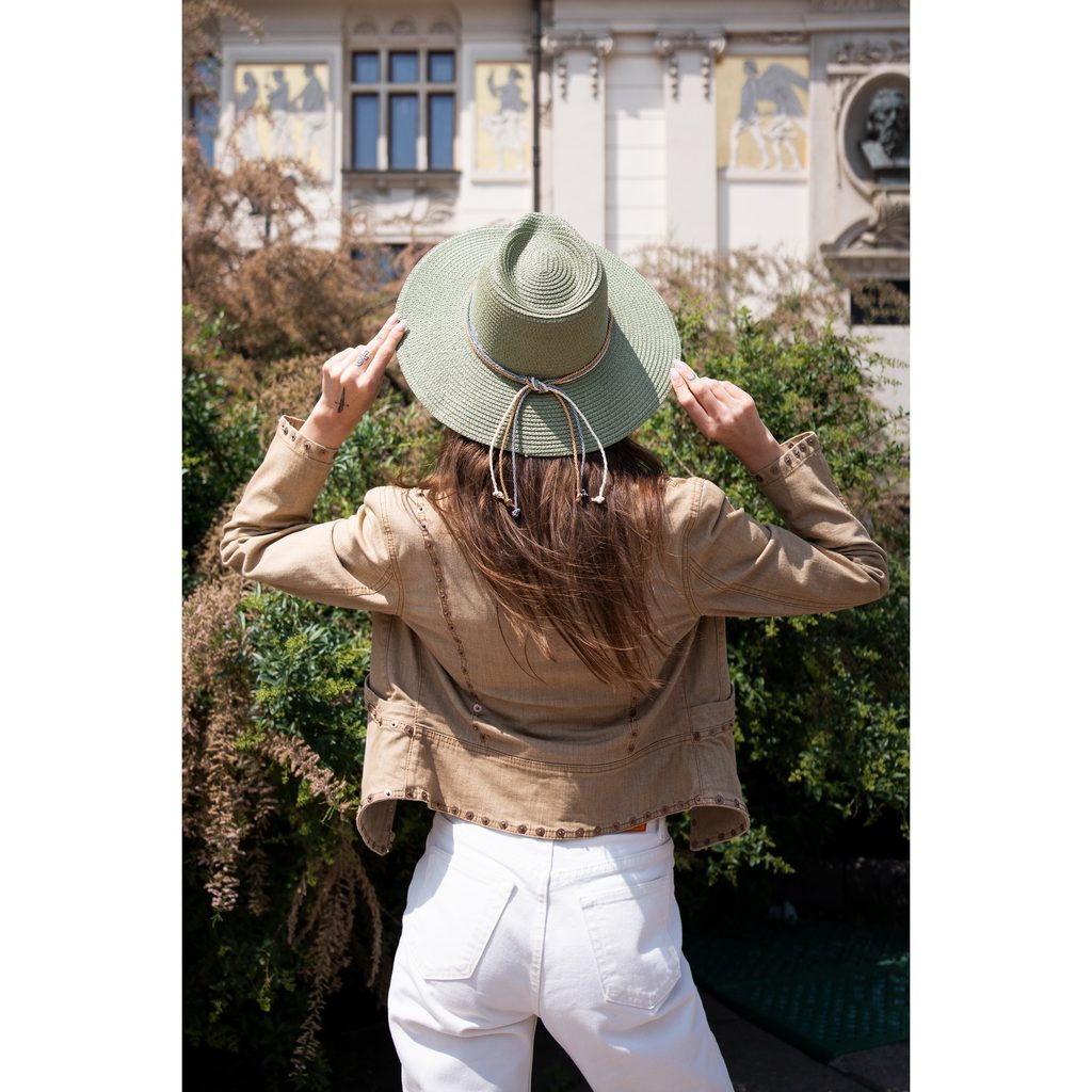 Letní klobouk se širokým lemem. Provedený z přírodního materiálu. Velmi slušivý. Ideální doplněk pro městské stylizace na léto.