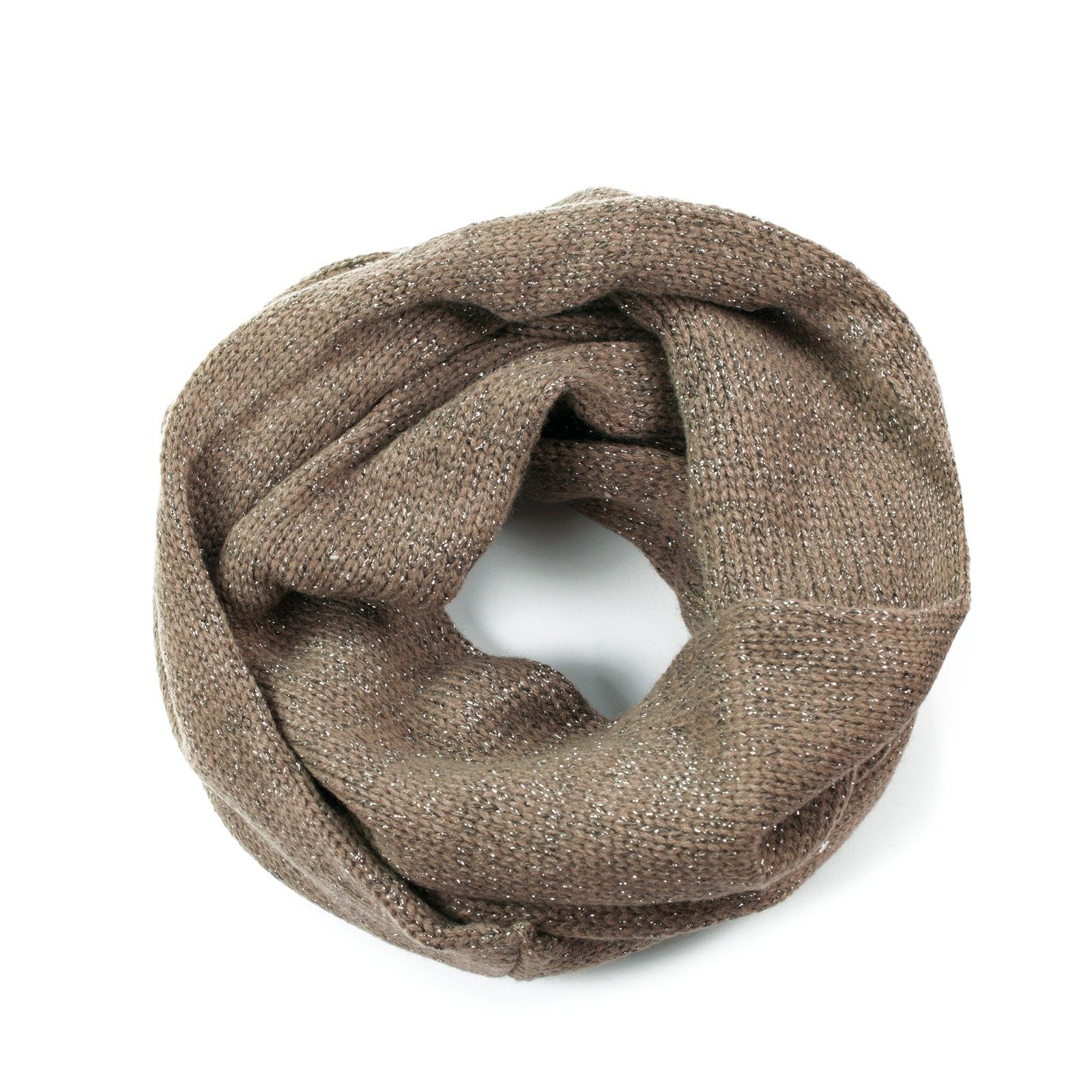 Teplý s hrubou strukturou, zimní šál - tunel s vpletenou stříbrnou nitkou.
