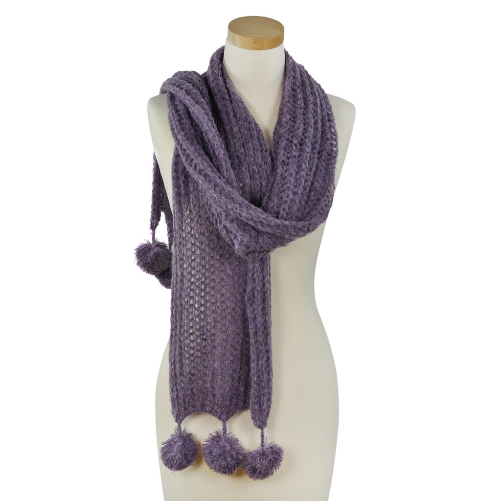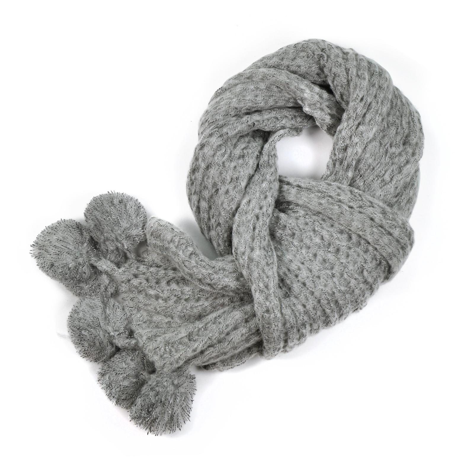 Zimní šála s bambulkami - šedá